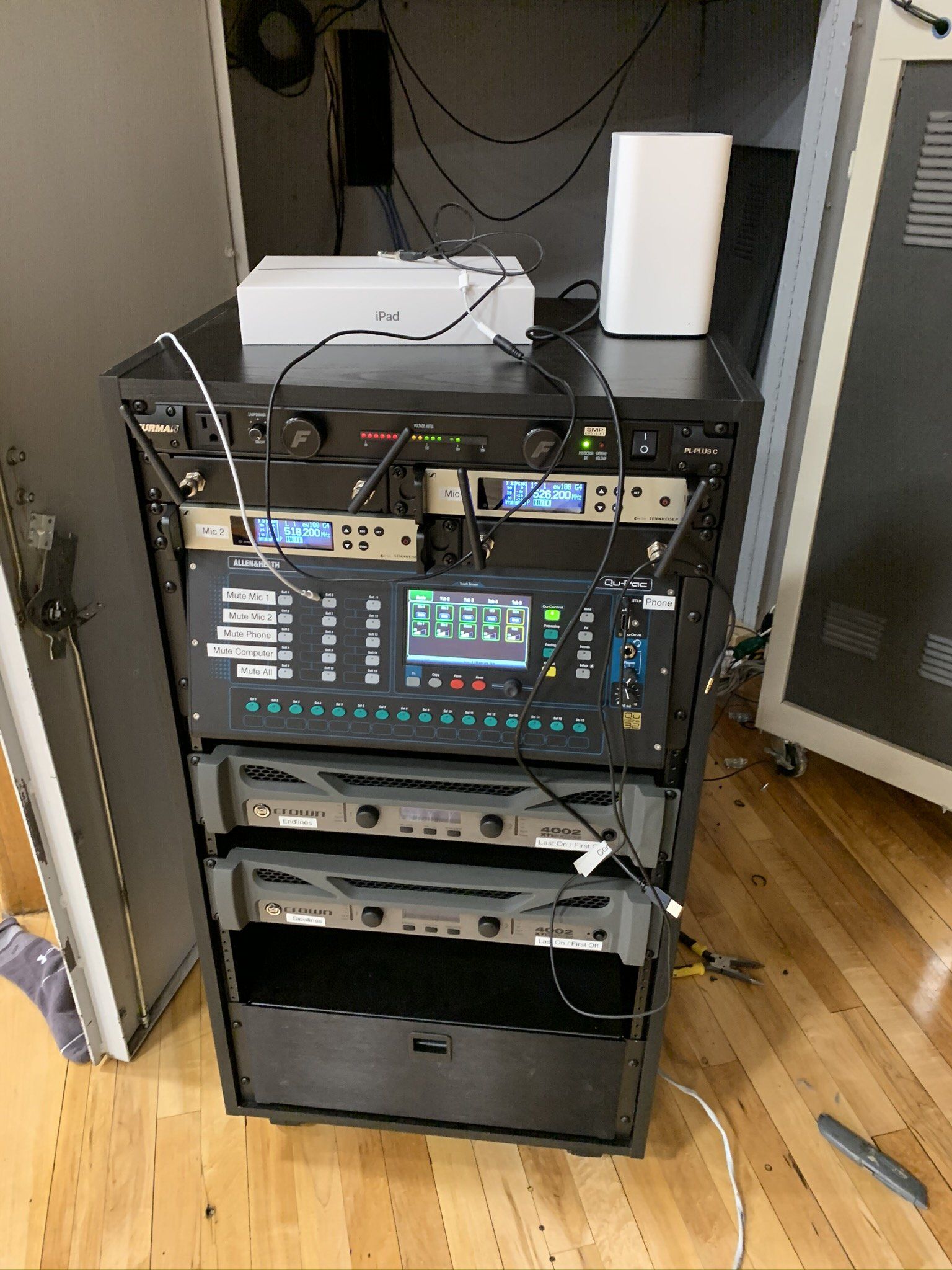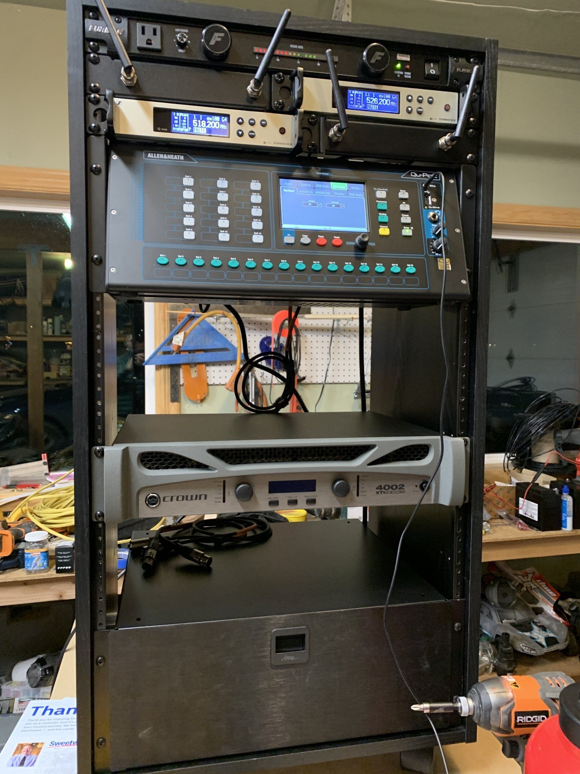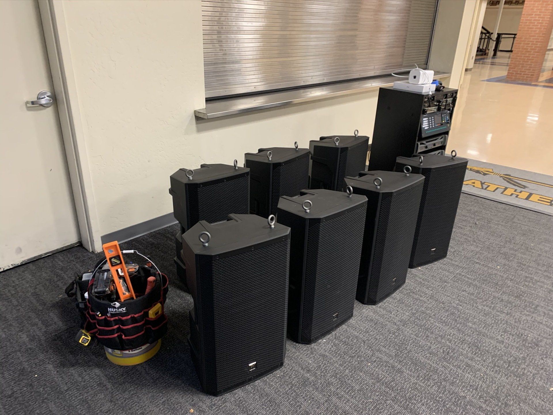 I was contacted by Flathead High to do an upgrade to the gymnasium audio system. Before, there were three PA cabinets and 1 PA subwoofer in charge of distributing audio across an entire gym. People are sound suckers, so by the time the sound hit the first few people it had dissolved so much that a mid court seat couldn't hear the announcer. Enter 8 new 15" Electro-Voice PA speakers and a new amp rack and mixer with wireless control via iPad. The gym is now capable of controlling the mix of 2 wireless mics, laptop music, phone music, and the entire mix easily from the scorer's table during sporting events. For things like graduation, the mixer is capable of handing 16 inputs which could include anything from an acoustic guitar to an .mp3 of the class song. It really is a quality system with ease of controlling that will work well in a setting where many people are trying to operate the sound system with varying backgrounds of sound experience. For a little more low-end, we utilized the existing subwoofer in the gym and integrated it into the sound rack. There's not a dead spot in the building anymore.